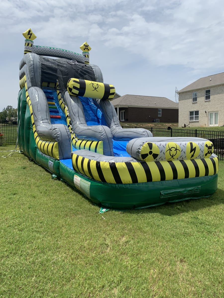 Our waterslide is available for delivery in Spring Hill, Franklin, Maury, Nashville, Lewisburg, and surrounding areas, ensuring that you can bring the fun to your doorstep. Make a splash at your next event with the 19' Toxic Waterslide and create memories that will last a lifetime!
